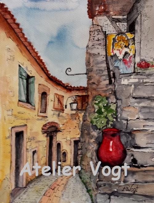 | Künstlergasse in Eze Village 27x35 cm | Phalenopsise in Lila 27x35 cm |